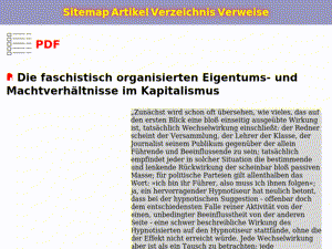 Die faschistisch organisierten Eigentum[+]s- und Machtverhältnisse im Kapitalismus[+]; Terminologie für Organisationsformen und Definition des Faschismus; Harmonie; Rang; Schuld und Zwang[+]; Faszination; Die Zins[+]sekte, der theo-ökonomische Komplex und seine Evolution[+]; Das kapitalistische Wertsystem, sein Darwinismus und seine Übertragung; Prinzipien der Wertung, der Ungleichwertigkeit und der Wertung des Selbst; Machtmittel in der Verzerrung des Gleichgewichts der Bestimmung; Teile und Herrsche; Gewährung von Kredit; Durchsetzung von Begünstigungen über das politische System: Subventionen ud Steuererleichterungen; Das Phänomen des Faschismus im Europa des 20. Jahrhunderts; Die grobe Struktur des Kapitals und des internationalen Banken[+]-Systems; Der Begriff des Recht[+]sinstituts; Demokratische Elemente im Kapitalismus[+]; Referenzen / Einzelnachweise